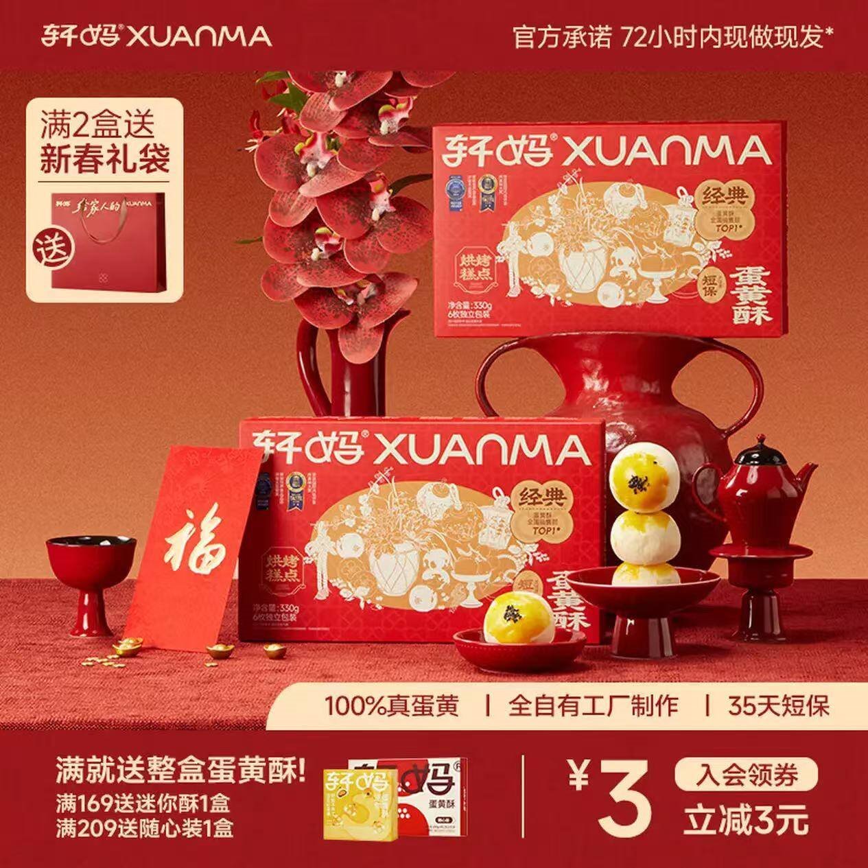 轩妈 短保低糖蛋黄酥55g*6枚