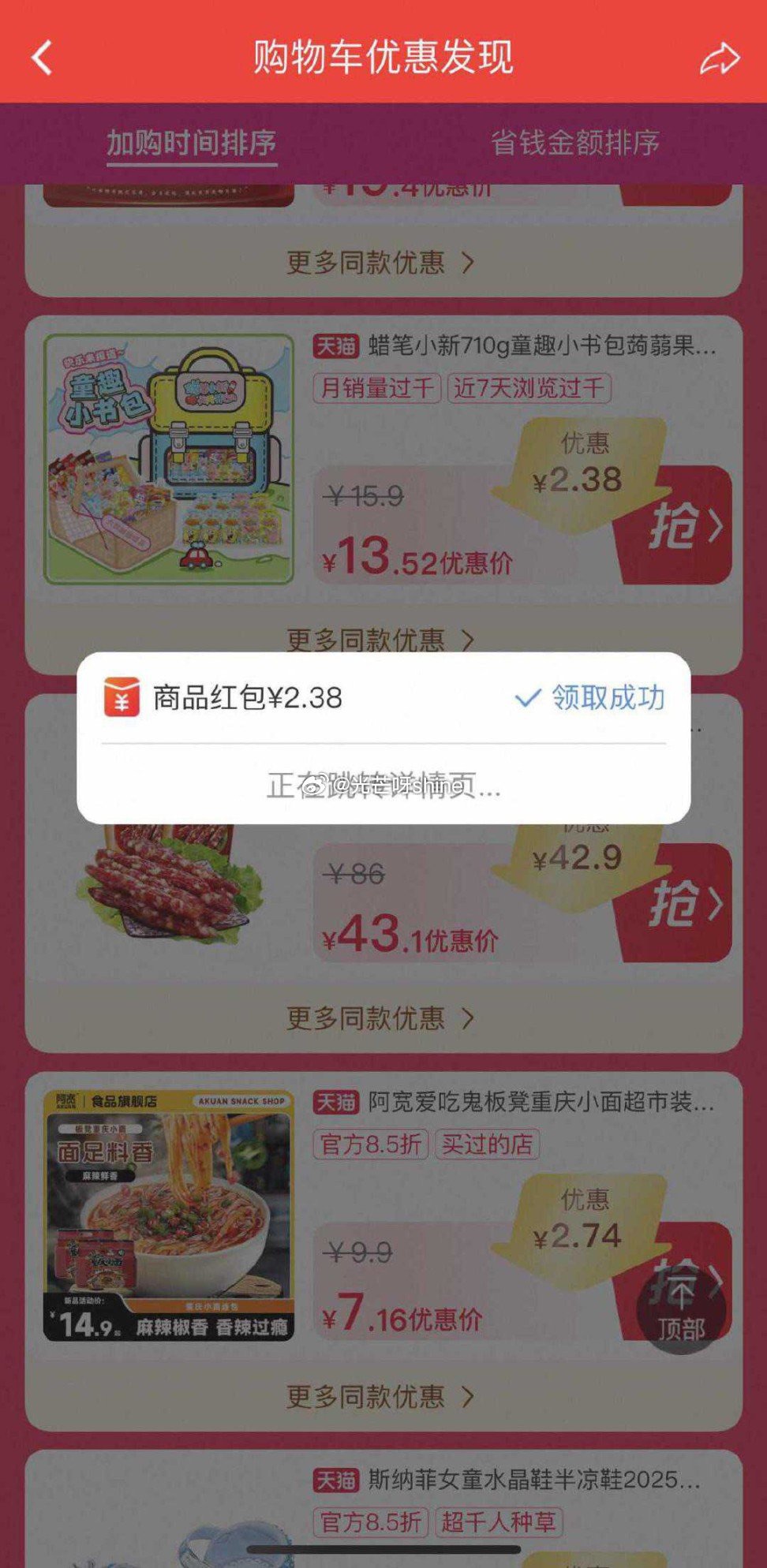 自己买什么东西先加购,然后再进会场,点击可以看到自己加购的有没有隐藏的优惠劵和虹包等