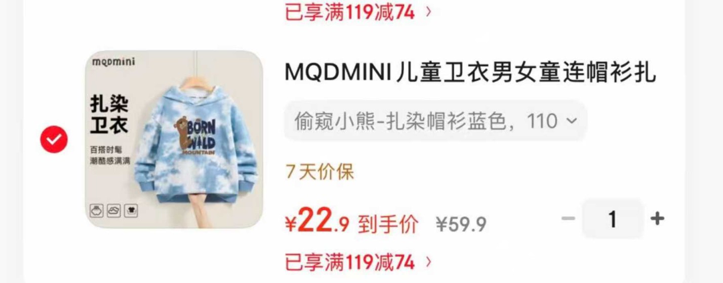 MQDMINI儿童卫衣男女童连帽衫扎染,任选2件【45.8】