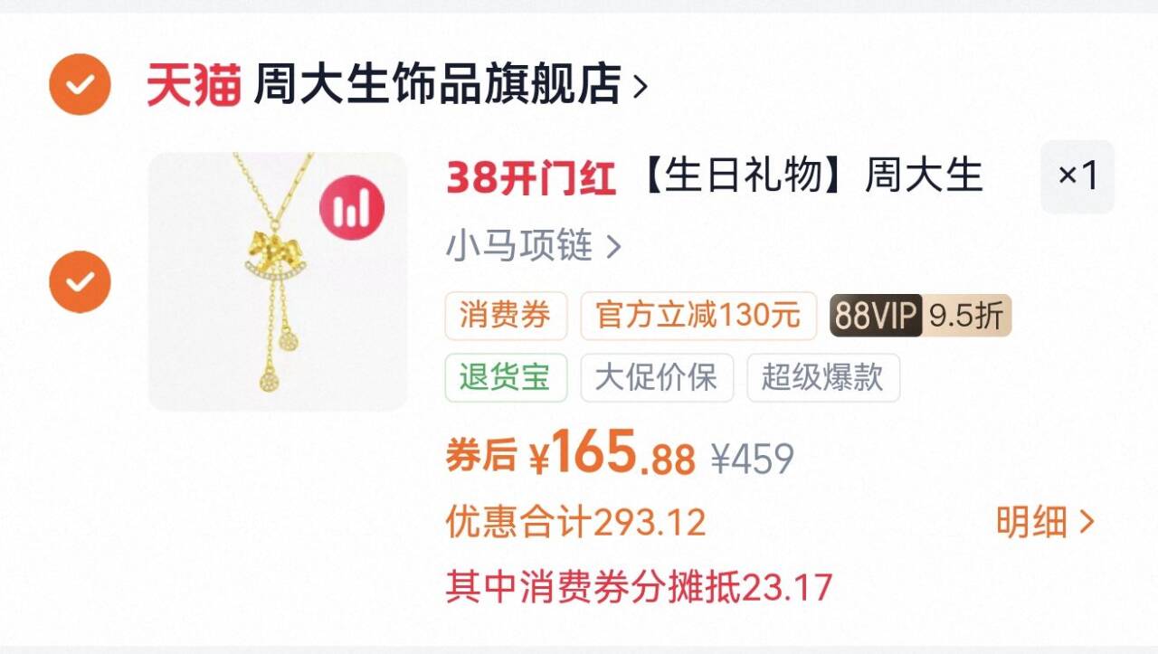 周大生小马项链1件 拍首项,寓意马上有财