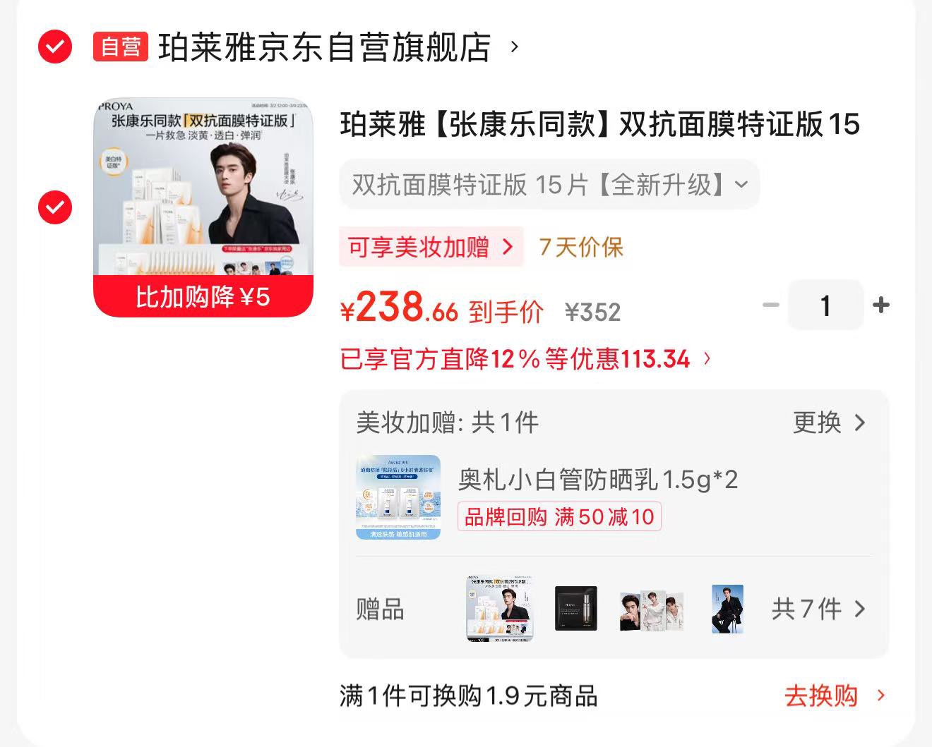 plus到手238.66亓 赠面膜15片