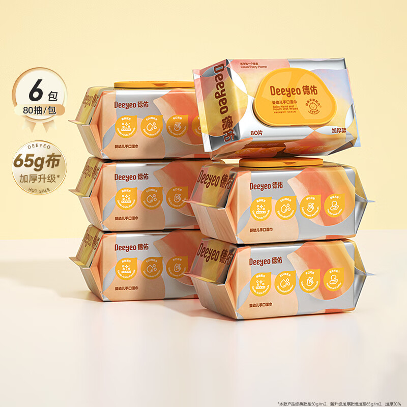 自营德佑尊享版婴儿手口湿巾80抽*6包