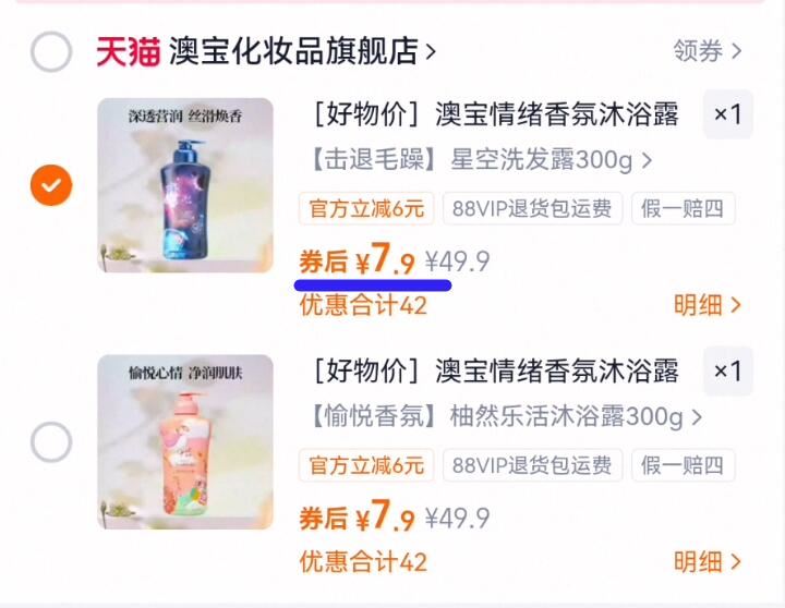 7.9元 澳宝 沐浴露300g