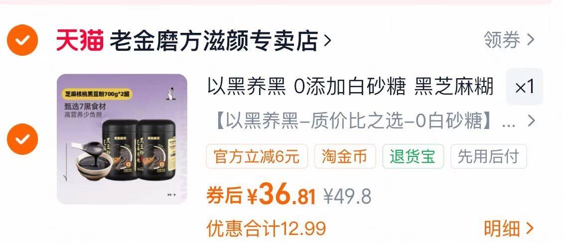 36.8亓700g*2罐 老金磨方黑芝麻糊/黑豆粉 熬夜/掉头发/气血不足必入好单发报员2026年03月02日 22:390举报 36.8亓700g*2罐老金磨方黑芝麻糊/黑豆粉熬夜/掉头发/气血不足必入养生育发食补养生必备嗷https://m.tb.cn/h.i1uwkgQ复制文案
