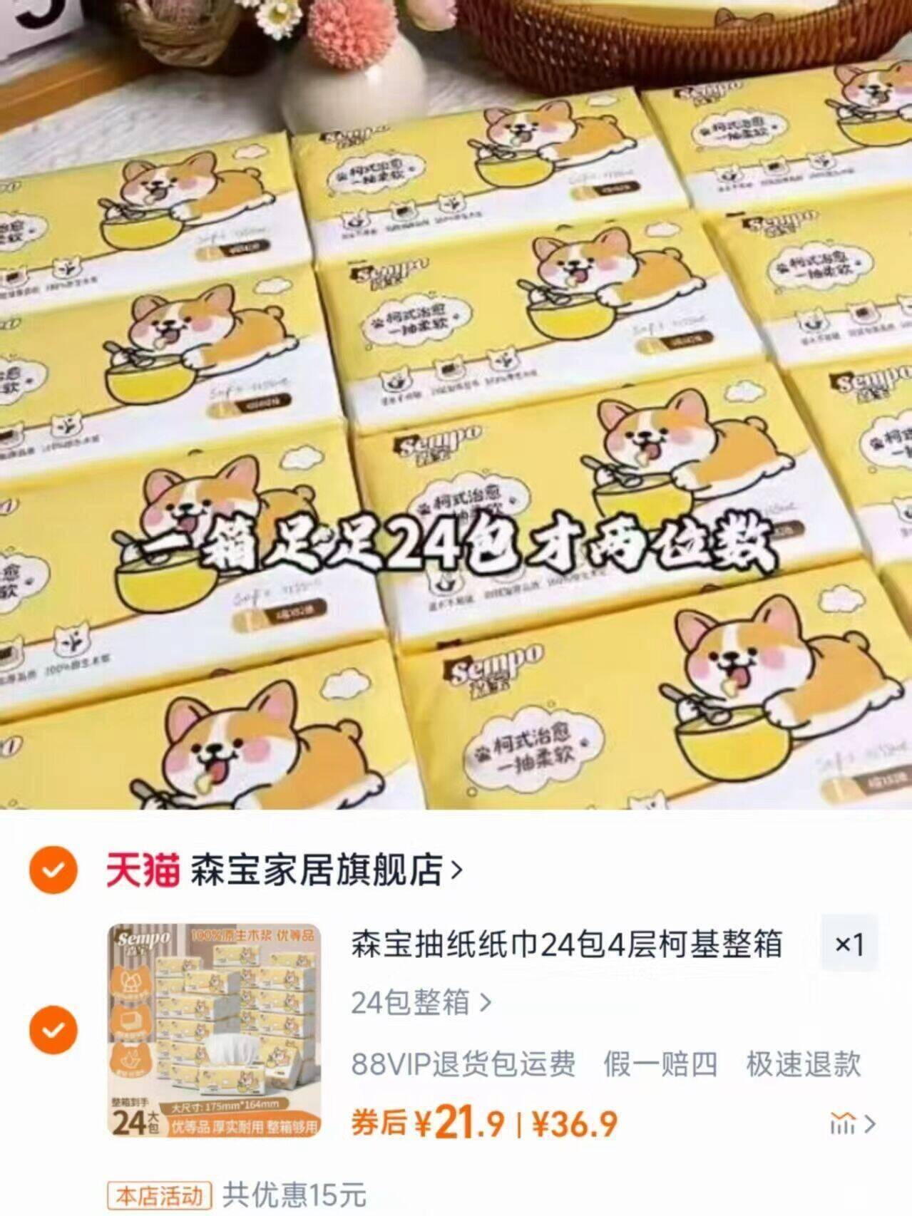 21.9大尺寸加厚! 森宝柯基抽纸加厚4层24包 175X164超大尺寸新品!好单发报员2026年03月02日 22:590举报 21.9大尺寸加厚!森宝柯基抽纸加厚4层24包175X164超大尺寸新品!森宝大厂出品 品质好货https://m.tb.cn/h.iYG1Vd0复制文案