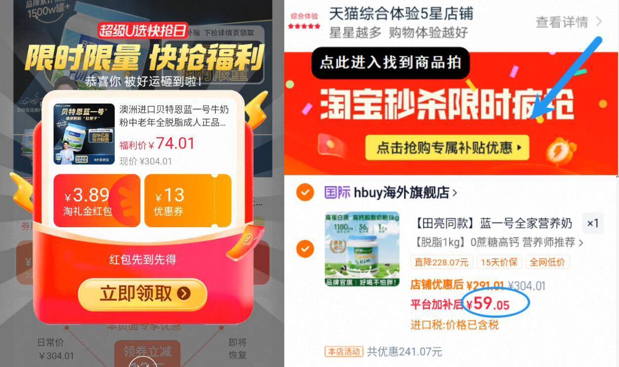 需下拉详情进秒杀会场拍