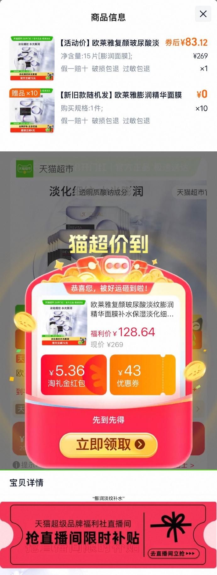 欧莱雅膨润精华面膜15片 赠20片,领礼金