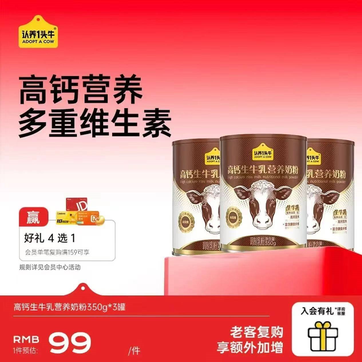 认养一头牛 高钙奶粉350g*3罐