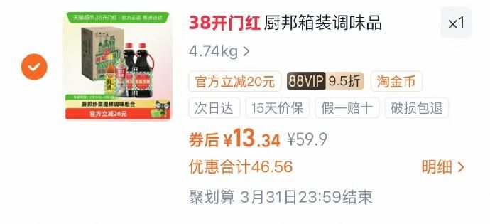 厨邦金品生抽1.48kg*2 蚝油605g 料酒500ml