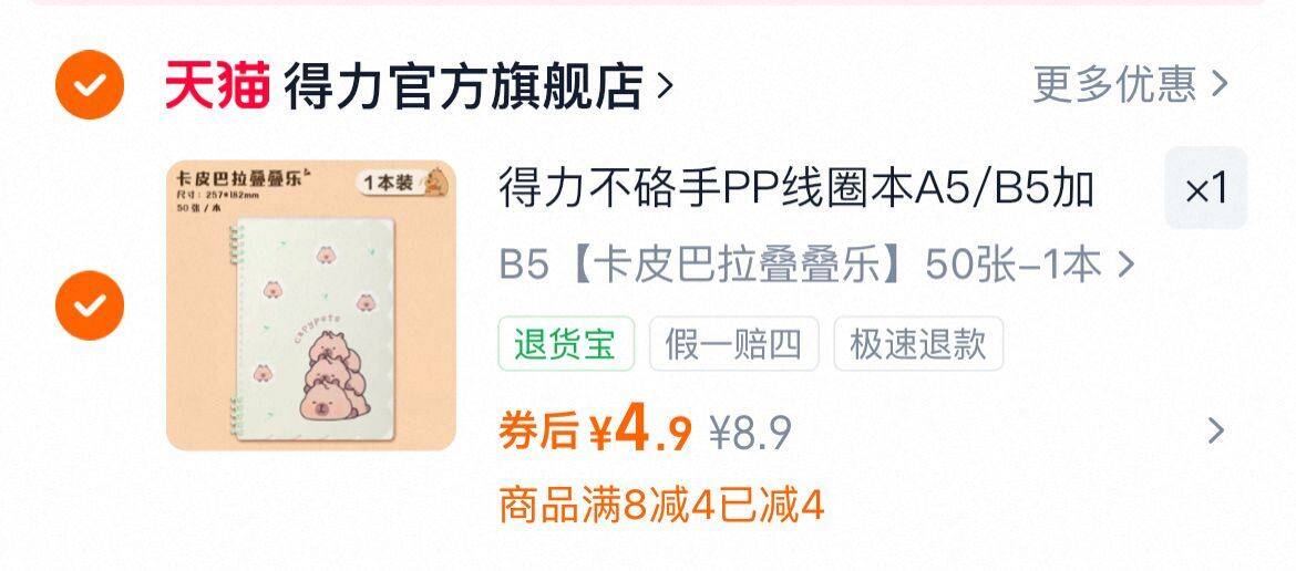 得力卡皮巴拉活页本 4.5亓 内页可拆卸重复使用超方便 B5大小便携实用赶紧入手好单发报员2026年03月03日 17:080举报 得力卡皮巴拉活页本 4.5亓内页可拆卸重复使用超方便B5大小便携实用赶紧入手https://m.tb.cn/h.iYhOtVj复制文案