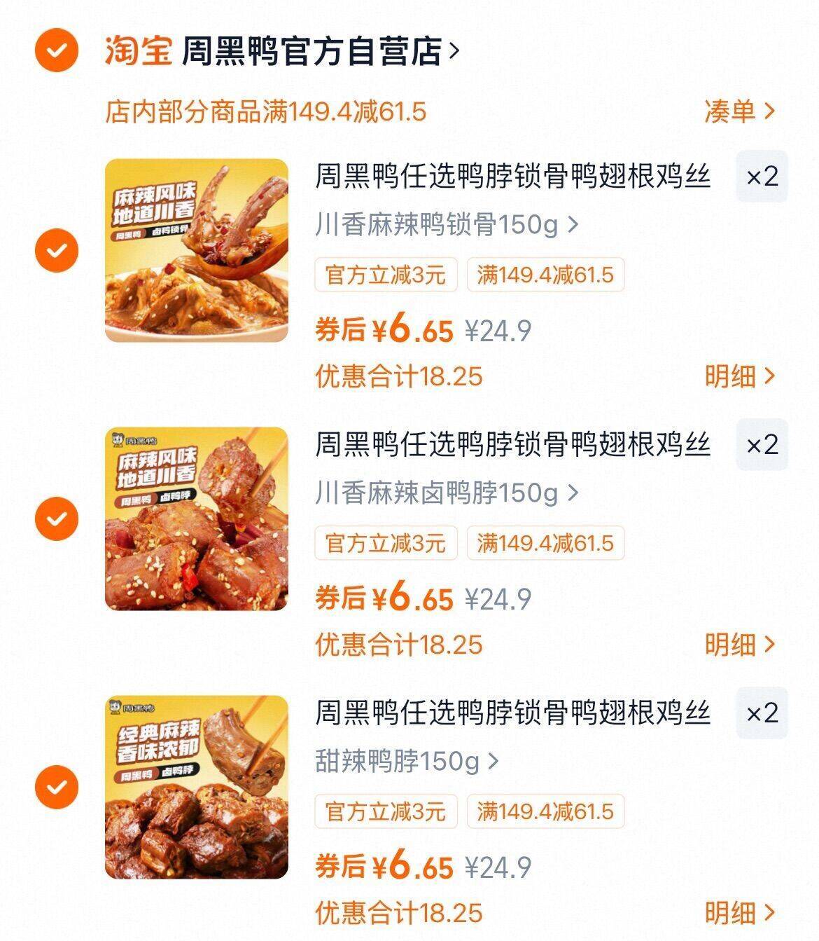 6.6元/件到手6件 周黑鸭锁鲜卤味零食 6盒