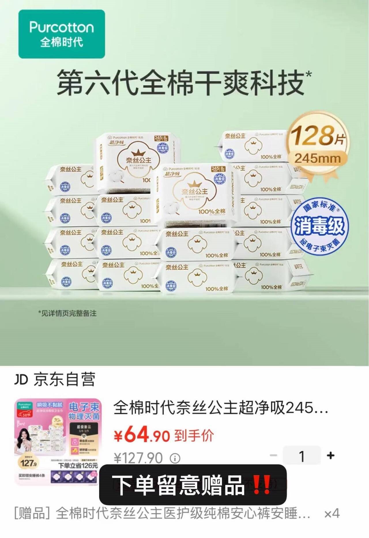 全棉时代 奈丝公主卫生巾128片