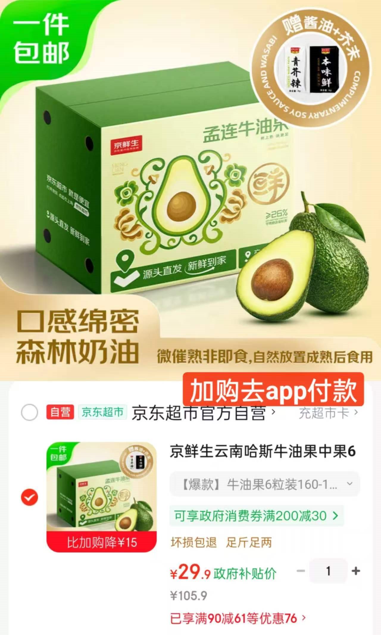加购去APP付29.9亓自营包邮