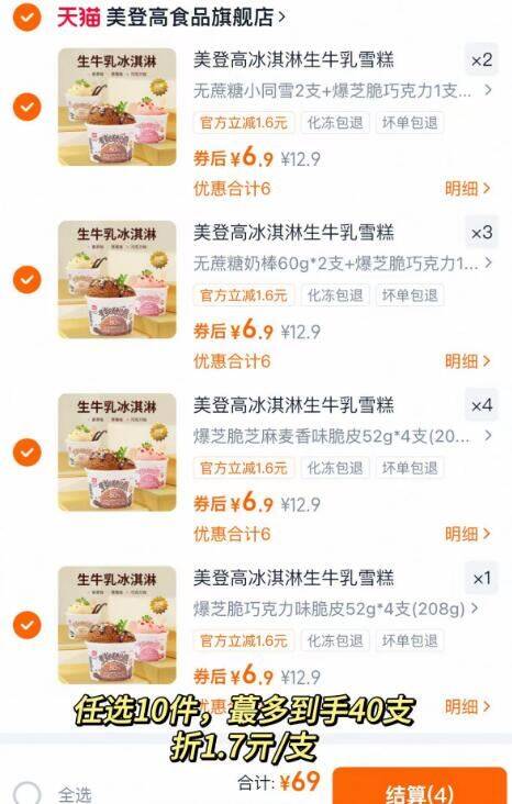 折1.7亓/支快全部任选 任选10件69亓,最多到手40支 美登高 爆芝脆冰淇淋合集 好单发报员 2026年03月05日 16:23 0 举报 折1.7亓/支快全部任选任选10件69亓,最多到手40支【美登高】爆芝脆冰淇淋合集https://m.tb.cn/h.icmLOPi 复制文案