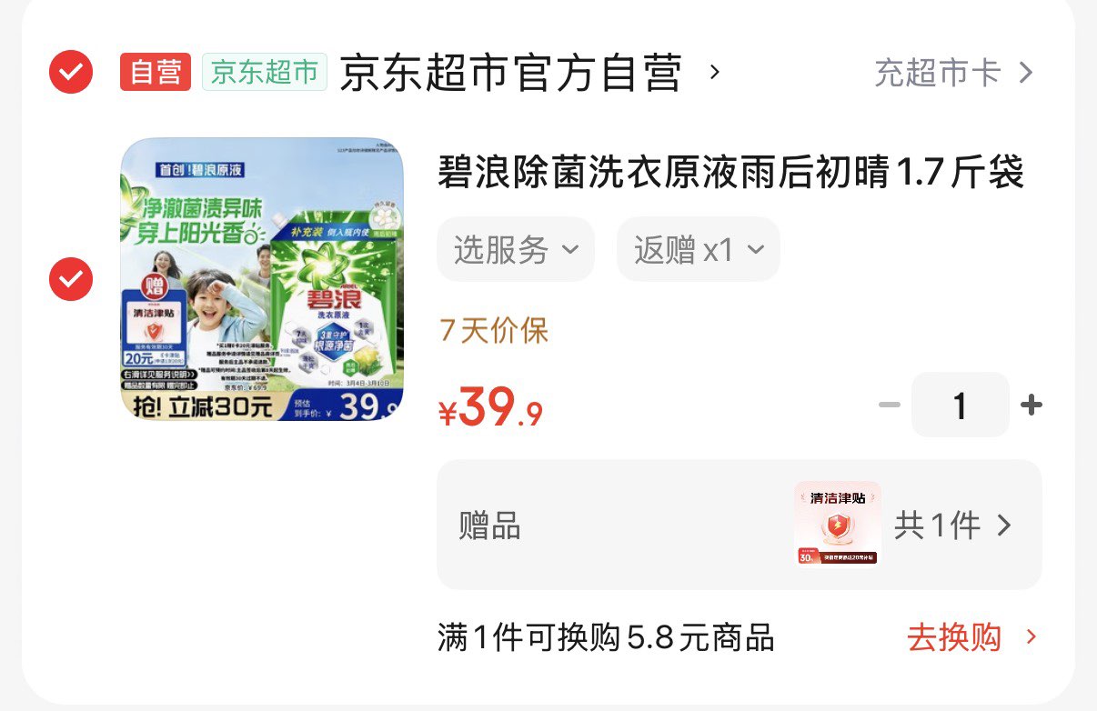 碧浪除菌洗衣原液1.7斤袋装 拍下39.9亓 反10超市卡 再赠20亓E卡 到手9.9亓好单发报员2026年03月05日 16:460举报 碧浪除菌洗衣原液1.7斤袋装拍下39.9亓 反10超市卡再赠20亓E卡 到手9.9亓https://u.jd.com/N6QGD5J复制文案
