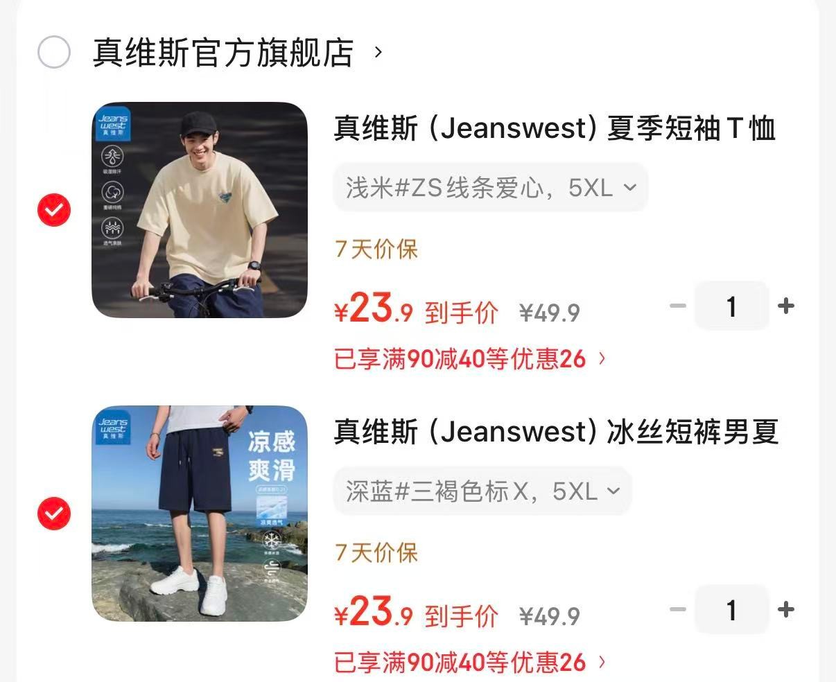 真维斯 夏季短袖T恤 冰丝短裤,各拍1件【47.8】