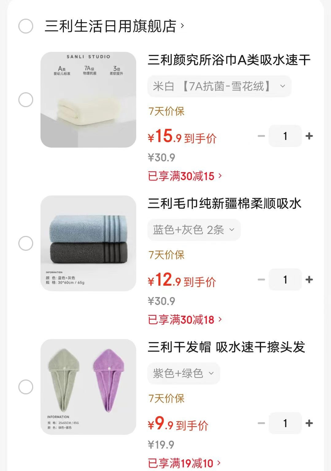 三利 干发帽 吸水速干包头巾 紫色 绿色 2条【9.9】