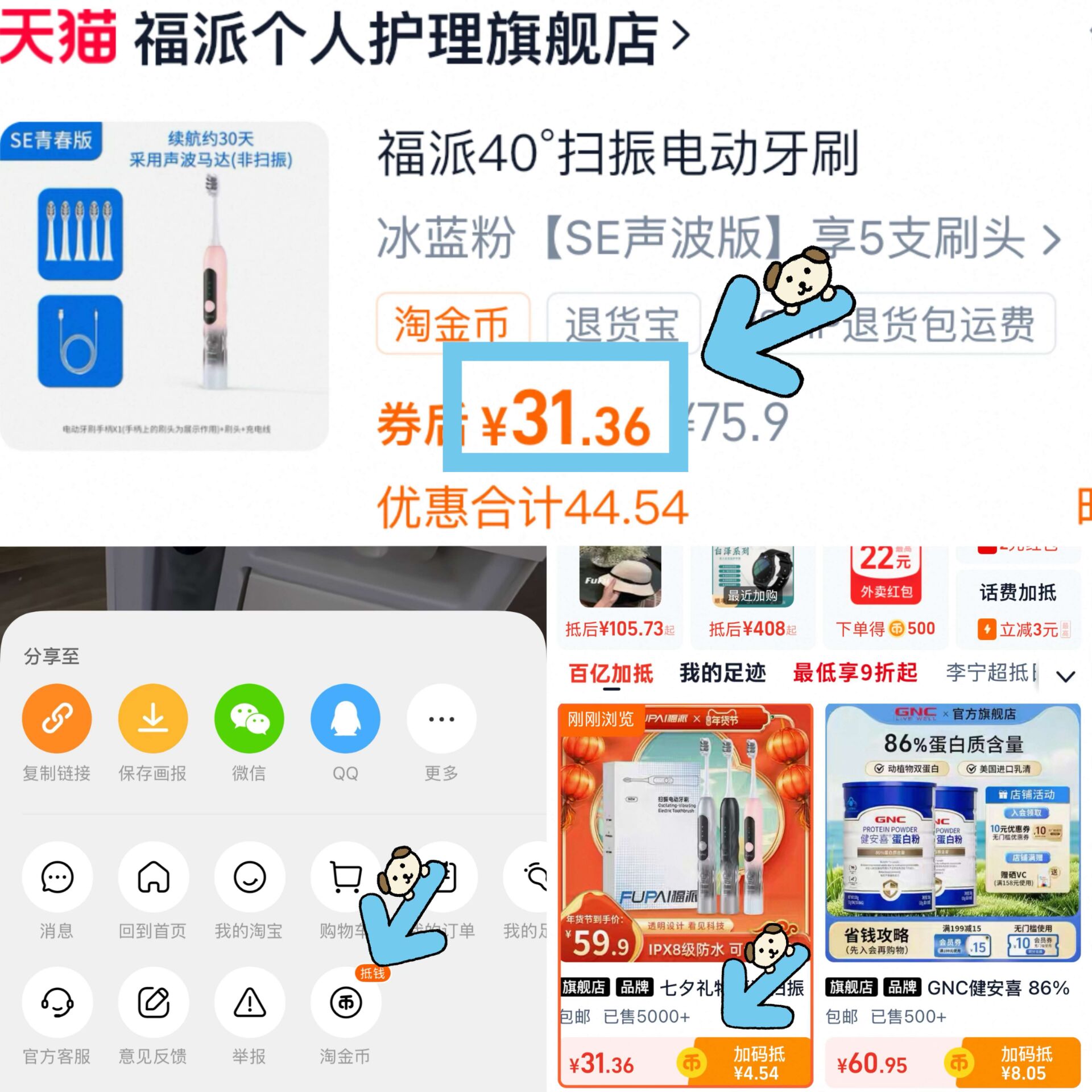 点击商品右上角进入淘金币下箪
