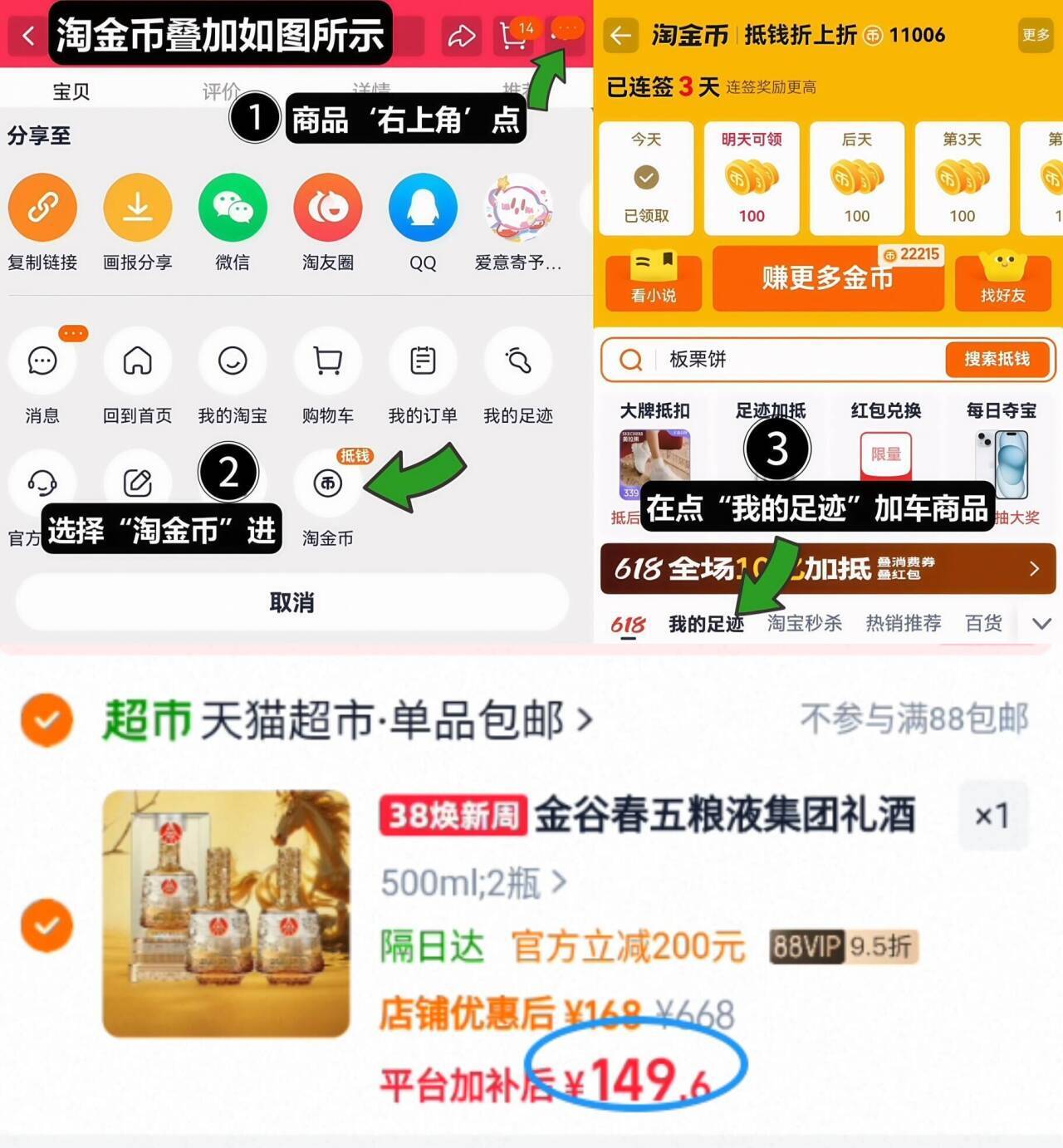 1、如图点右上角3个点选淘金币