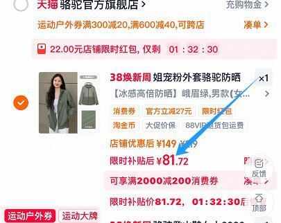 骆驼沐光防晒衣 付81.7亓