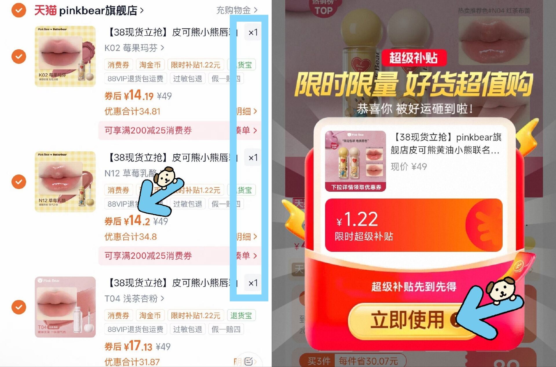 皮可熊黄油小熊联名唇釉
