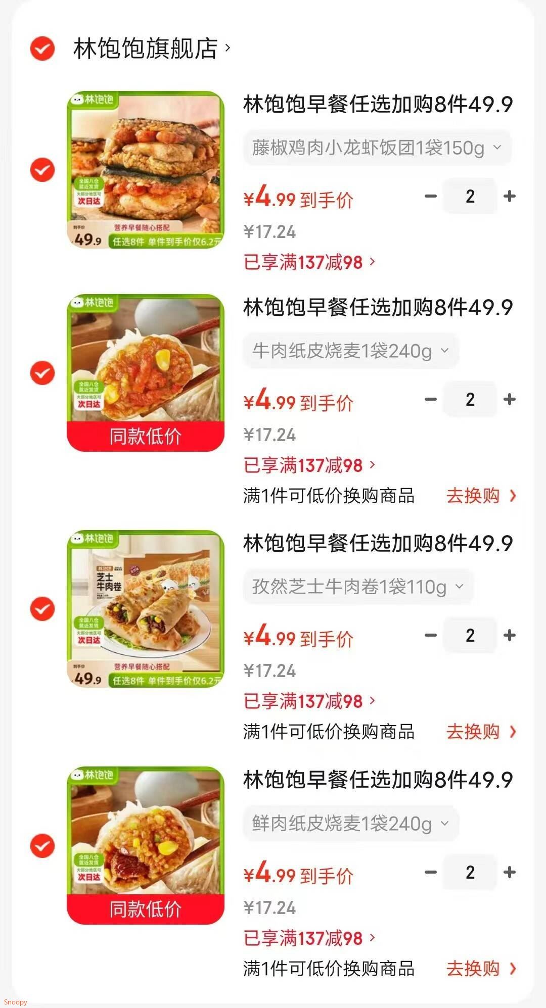 林饱饱 纸皮烧麦芝士牛肉卷鸡肉卷饭团等,任选8件【39.9】