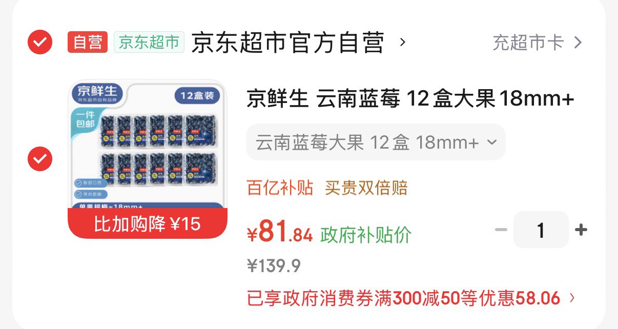 京鲜生云南蓝莓12盒18mm
