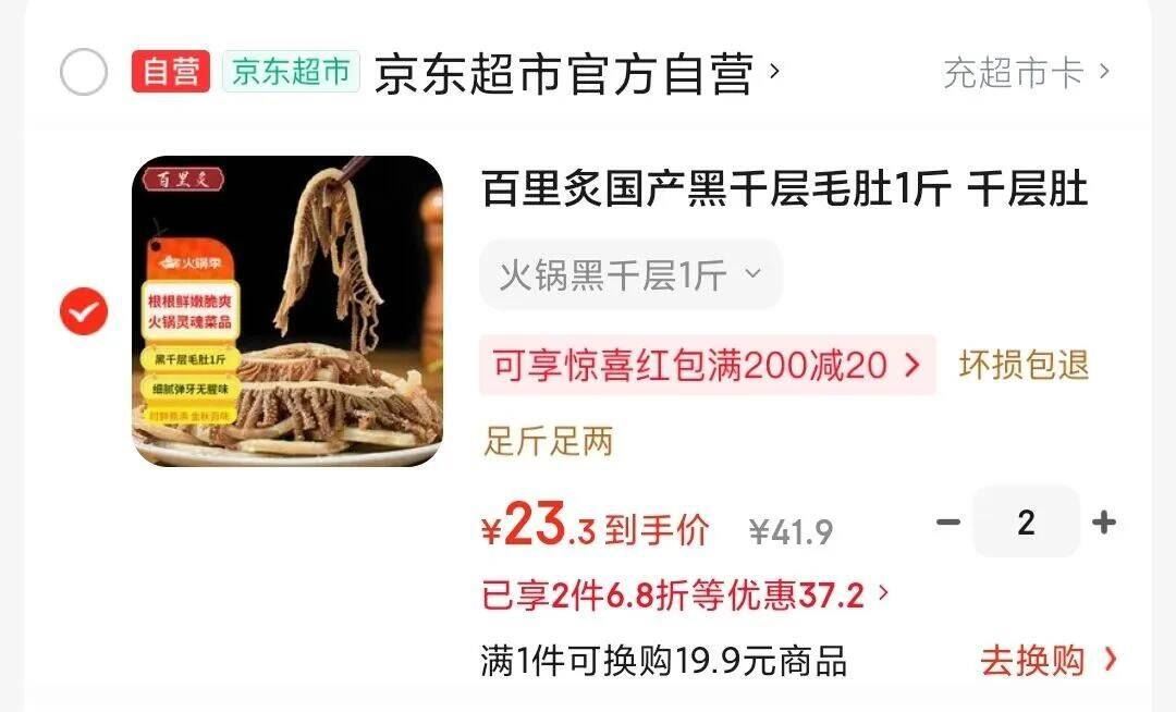 【自营】 百里炙 国产谷饲黑千层毛肚1斤