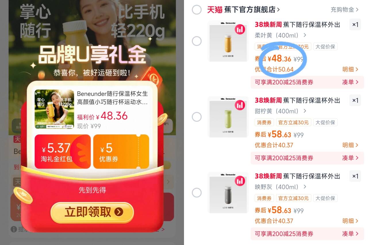蕉下Beneunder随行保温杯 316L食品级400ml48元.3 好单发报员 2026年03月05日 21:45 0 举报 蕉下Beneunder随行保温杯316L食品级400ml48元.3https://m.tb.cn/h.ic3yyt1 复制文案