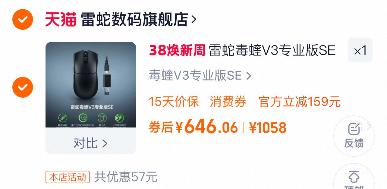 雷蛇毒蝰V3专业版SE【646】史低