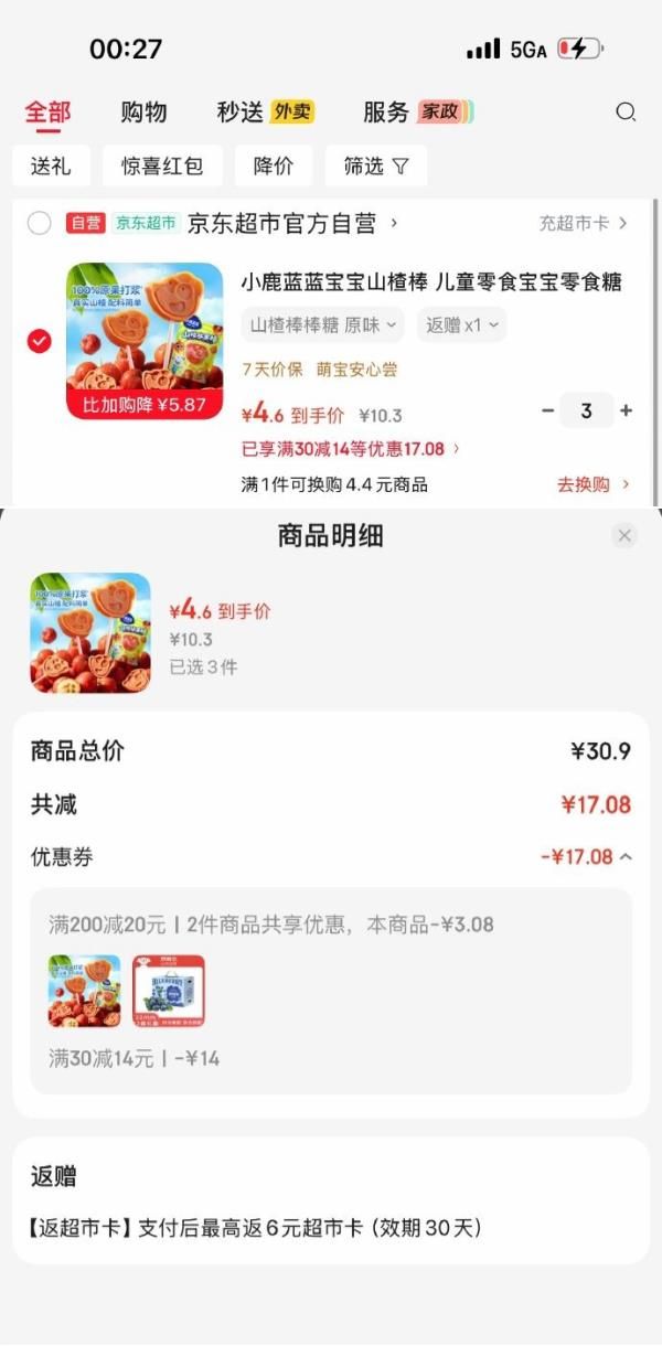 拍3件 每件4.6/返3卡