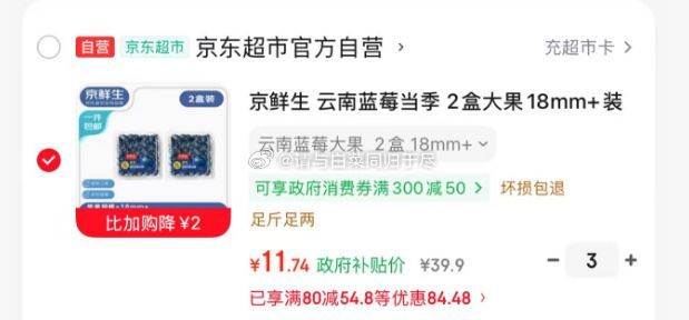 京鲜生 云南蓝莓当季 2盒大果18mm 装 125g/盒 11.7