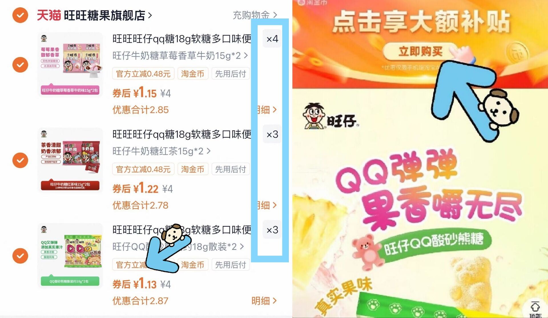 旺仔QQ软糖多口味啪10件