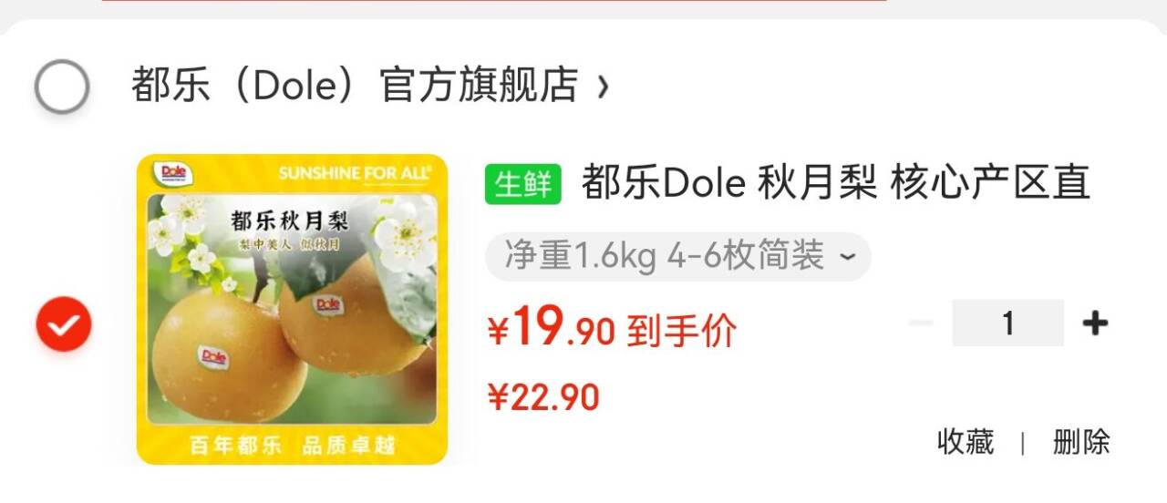 都乐Dole 秋月梨19元.9 净重1.6kg4-6枚,6.2/斤好单发报员2026年03月06日 10:530举报 都乐Dole 秋月梨19元.9净重1.6kg4-6枚,6.2/斤https://u.jd.com/ND8Ytza复制文案