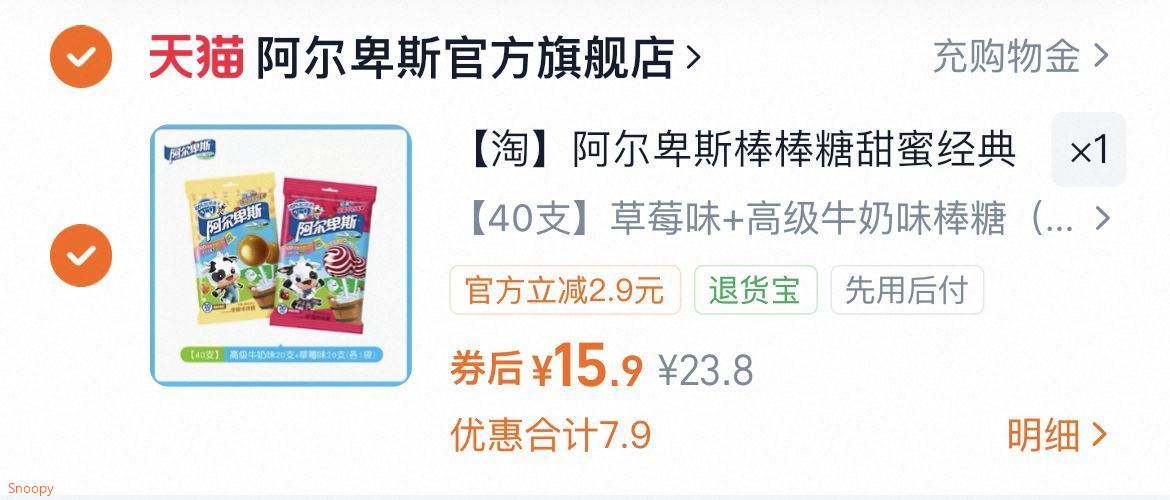 15元.9亓多口味40支 阿尔卑斯 经典棒棒糖 一口下去瞬间被拉回童年!好单发报员2026年03月06日 15:100举报 15元.9亓多口味40支【阿尔卑斯】经典棒棒糖一口下去瞬间被拉回童年!没变味!甜度刚刚好不会腻-https://m.tb.cn/h.i2xtmUy复制文案