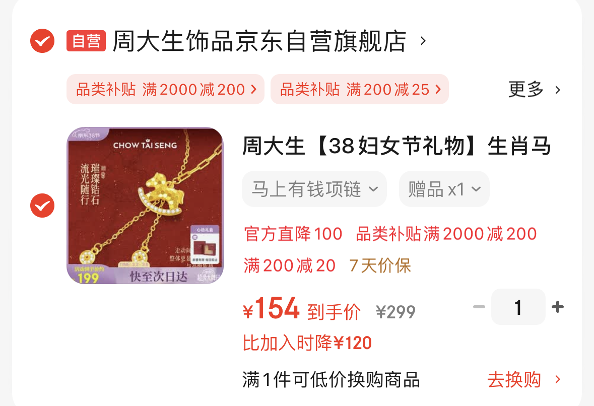 【自营包邮】周大生 生肖马纯银吊坠项链