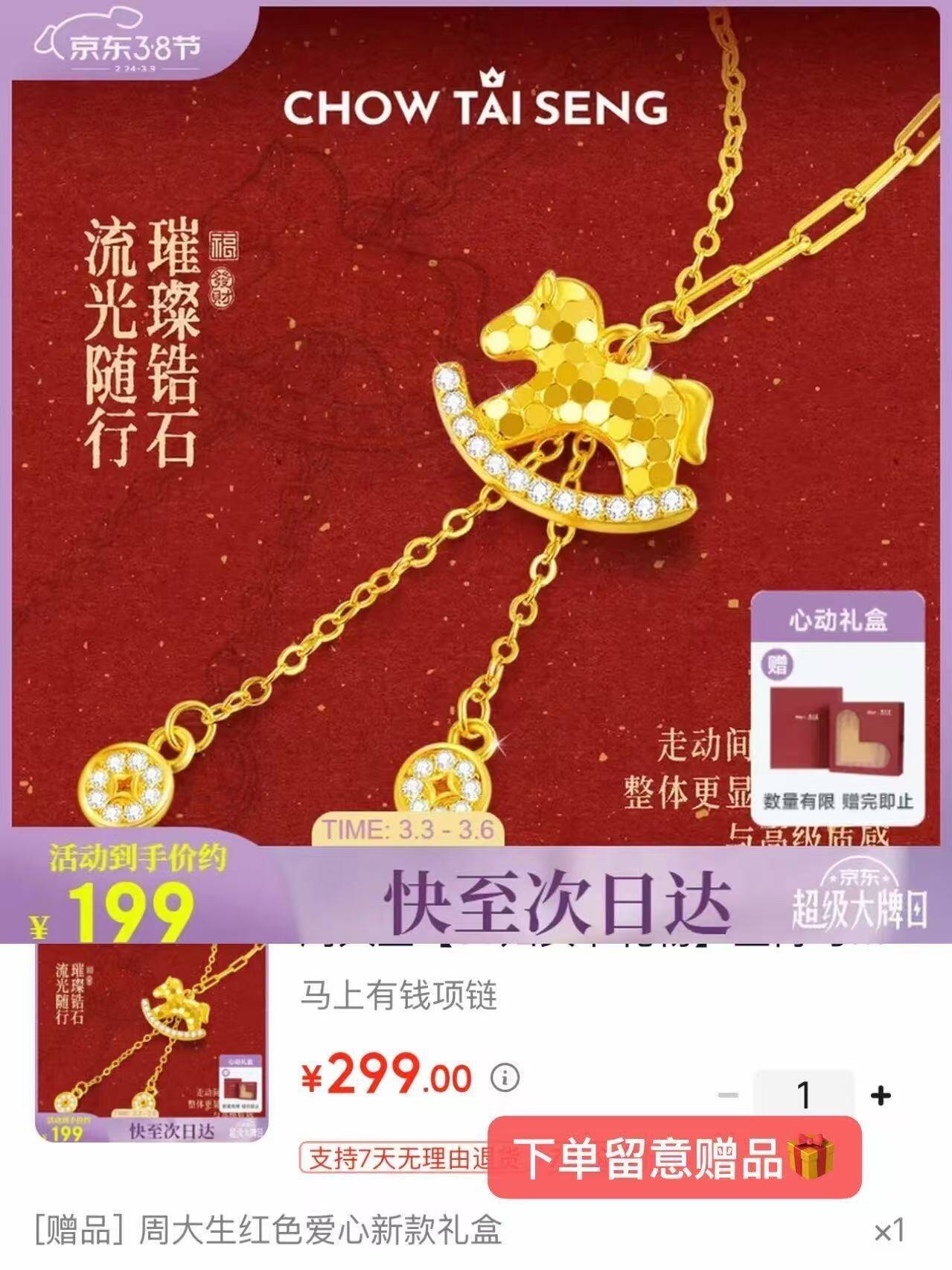 周大生 生肖马纯银吊坠项链