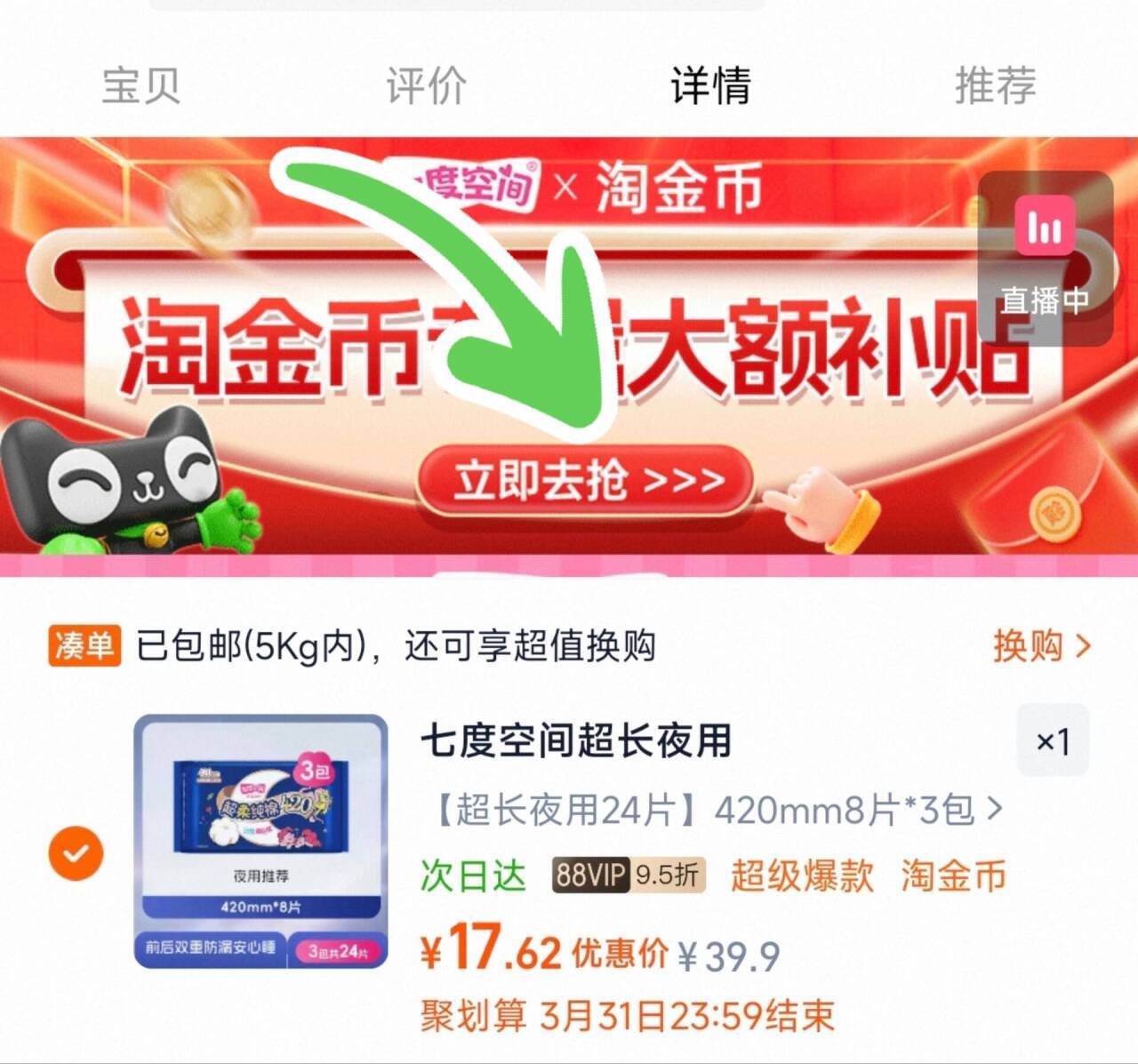 七度空间夜用卫生巾 420mm*24片,vip17元.6 -好单发报员2026年03月06日 17:020举报 七度空间夜用卫生巾420mm*24片,vip17元.6-下拉抵琻币 叠2首单https://m.tb.cn/h.icEv7VF复制文案