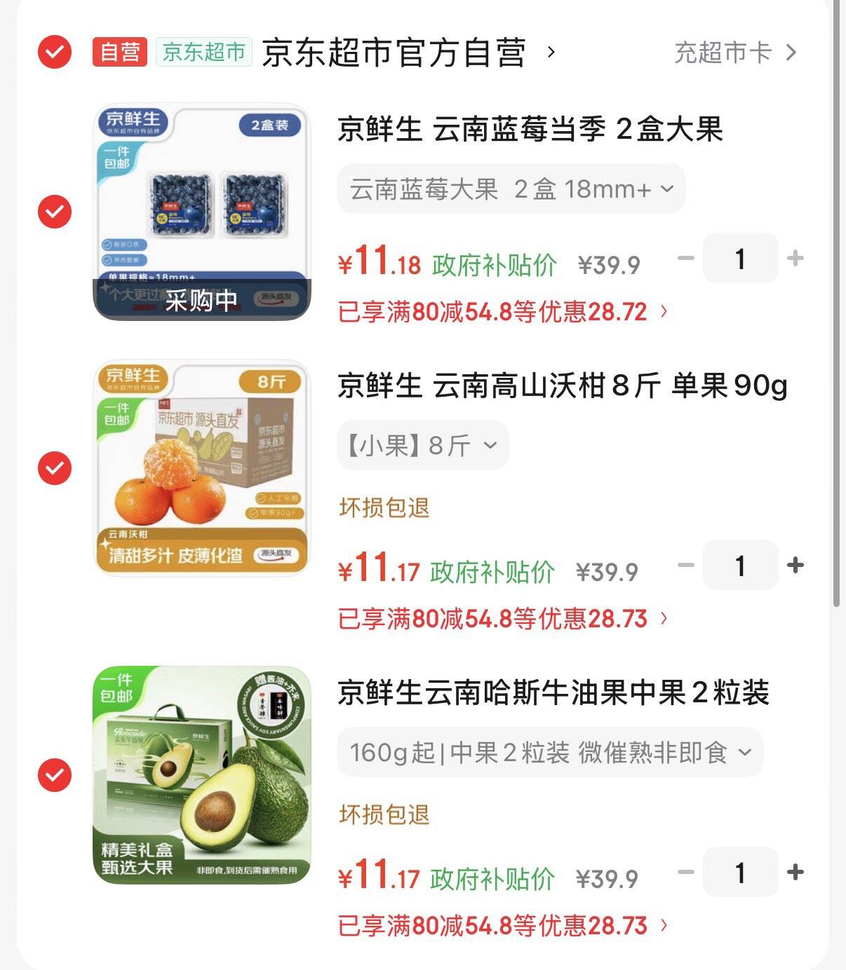 水果各拍1件凑后折11.1亓/件