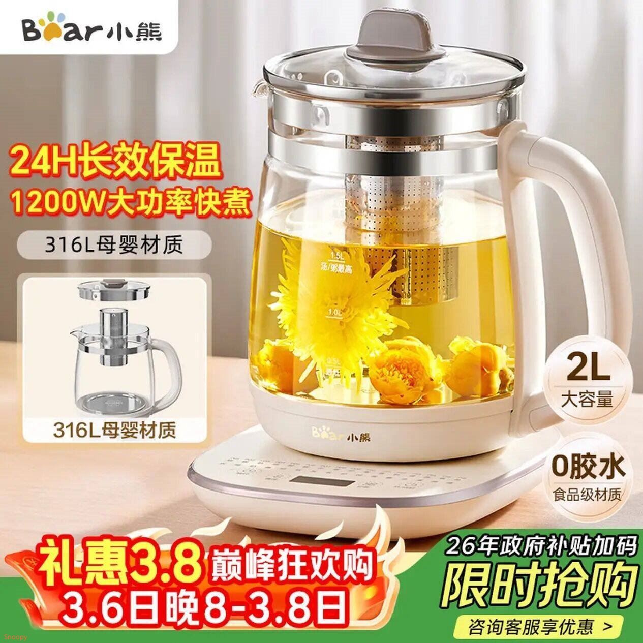 【自营】小熊 多功能养生壶2L