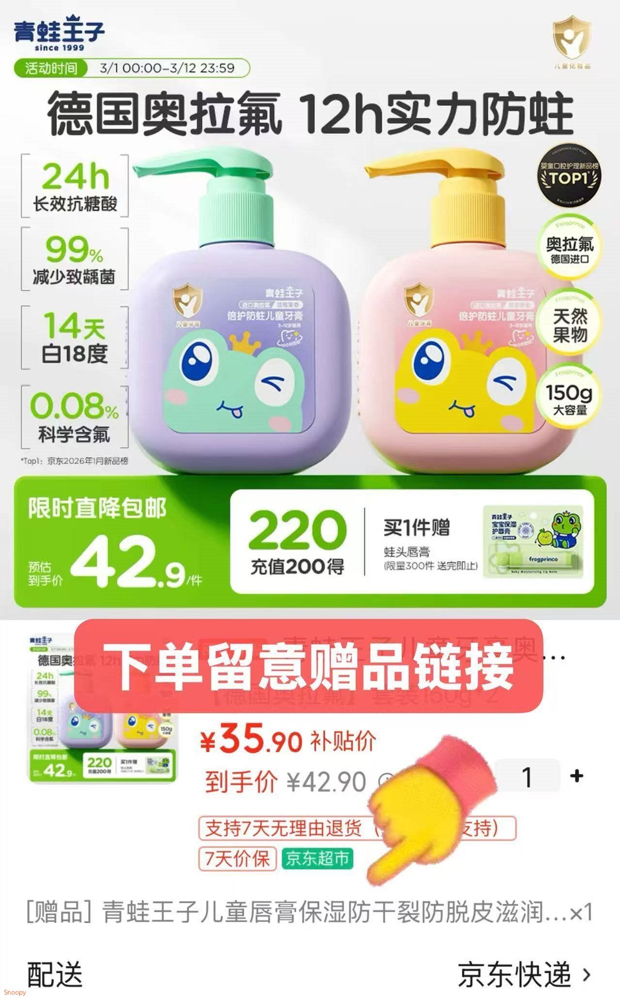 青蛙王子 奥拉氟牙膏150g*2瓶