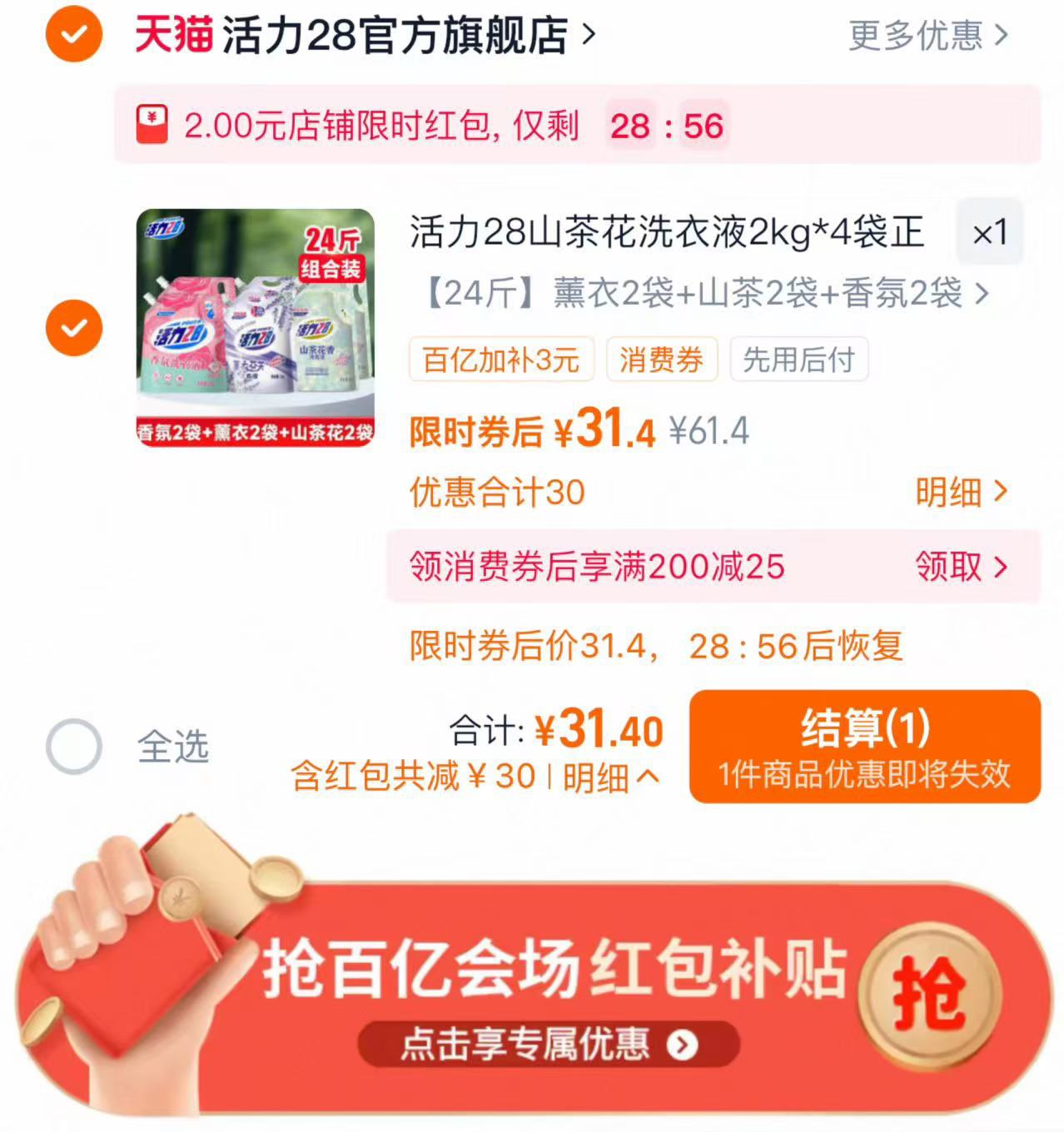 下拉进百亿补贴会场 弹20虹包-去使用-弹2亓虹包 拍24斤选项 到手31.4亓 1.3/斤好单发报员2026年03月07日 14:490举报 下拉进百亿补贴会场弹20虹包-去使用-弹2亓虹包拍24斤选项 到手31.4亓 1.3/斤活力28山茶花洗衣液洁净24斤https://m.tb.cn/h.i2Jd518复制文案