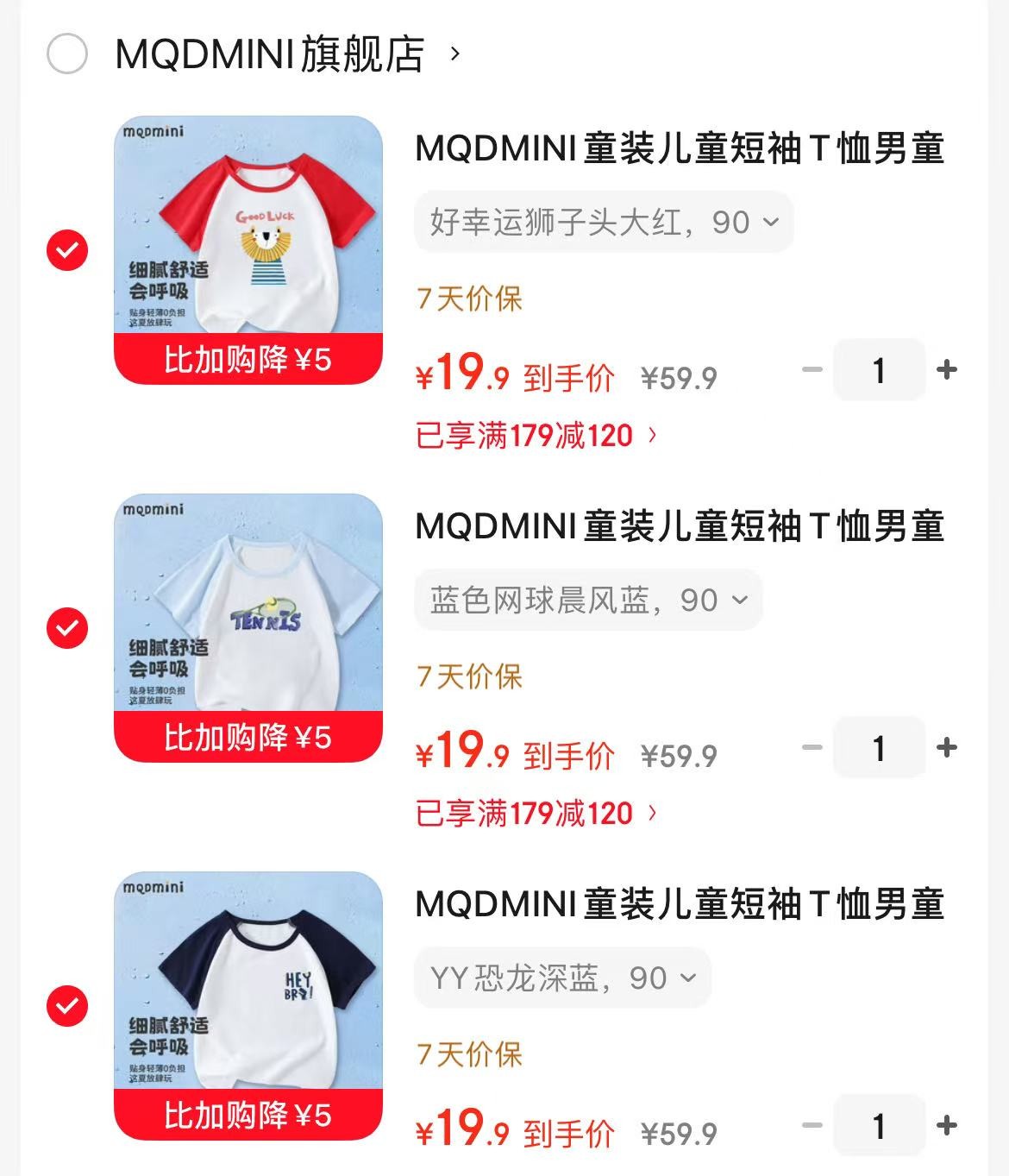 MQDMINI童装儿童短袖T恤,任选3件【59.7】