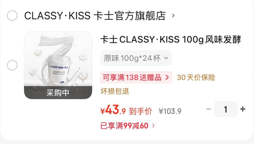 补卡士 原味酸奶100g