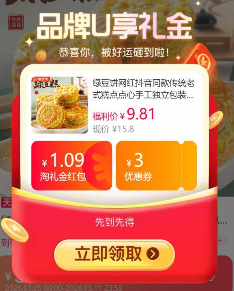速度3毛/枚绿豆饼 绿豆饼10枚*3盒装9.8 好单发报员 2026年03月07日 19:37 0 举报 速度3毛/枚绿豆饼绿豆饼10枚*3盒装9.8https://m.tb.cn/h.iXt9xsQ 复制文案