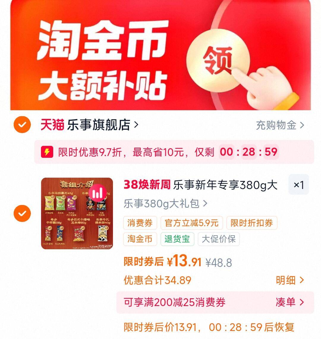 下拉拍 限时13.9亓 乐事薯片零食380g 复制这条信息打开手机陶宝好单发报员2026年03月07日 20:480举报 下拉拍 限时13.9亓乐事薯片零食380ghttps://m.tb.cn/h.iXF2D33复制这条信息打开手机陶宝https://m.tb.cn/h.i2xtAin复制文案