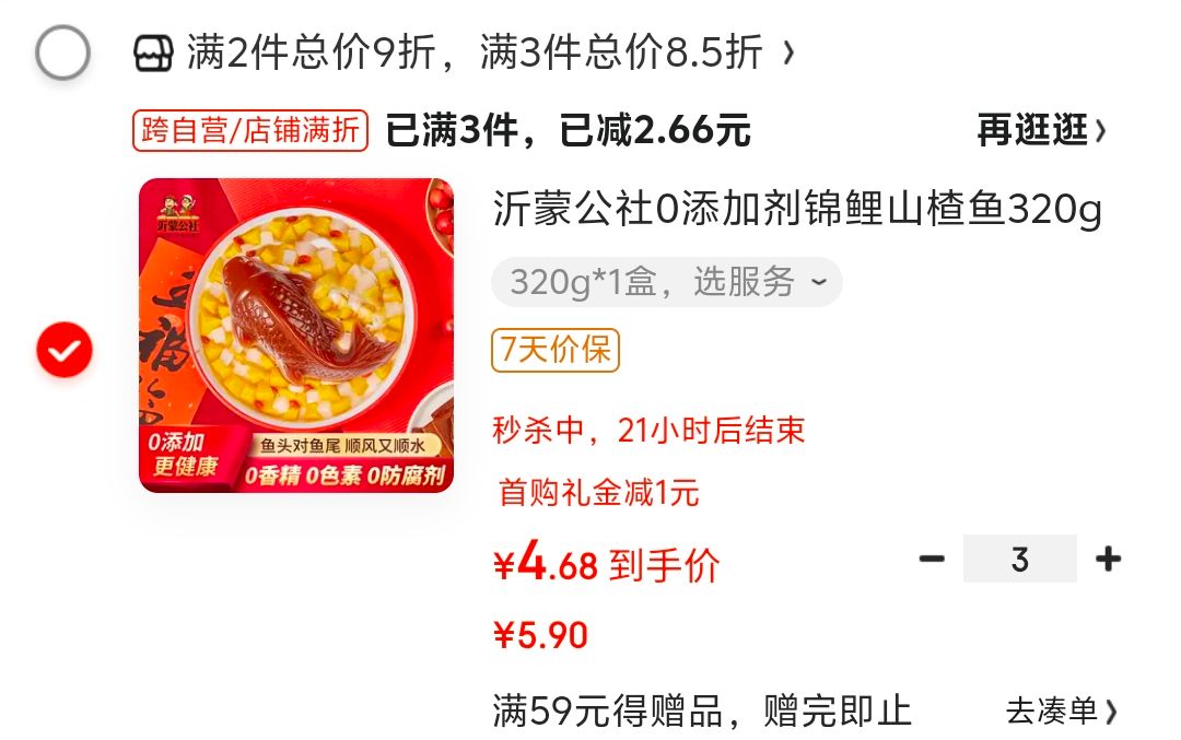 3件14 ,按需 沂蒙公社0添加剂锦鲤山楂鱼320g好单发报员2026年03月07日 22:140举报 3件14 ,按需沂蒙公社0添加剂锦鲤山楂鱼320g https://u.jd.com/N6gGOFI复制文案