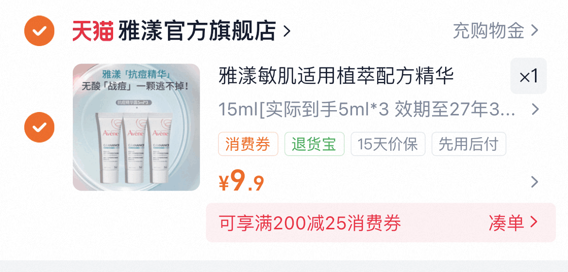 9.9亓 雅漾控油抗痘修护精华露5ml*3
