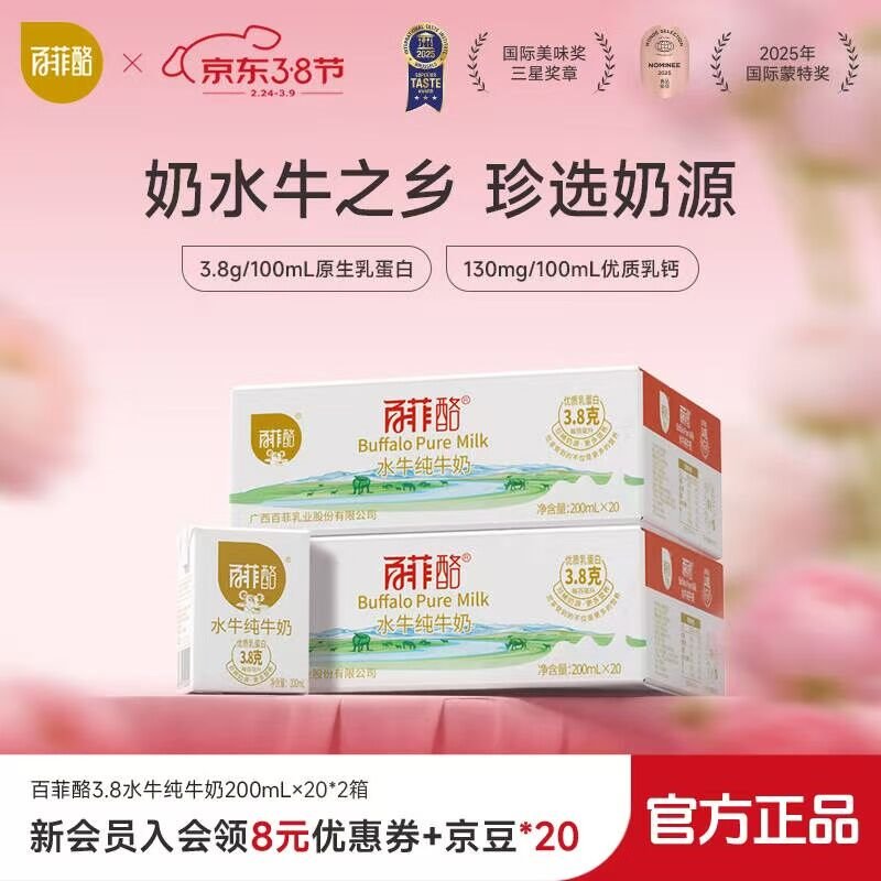 百菲酪 水牛奶200ml*20盒*2箱