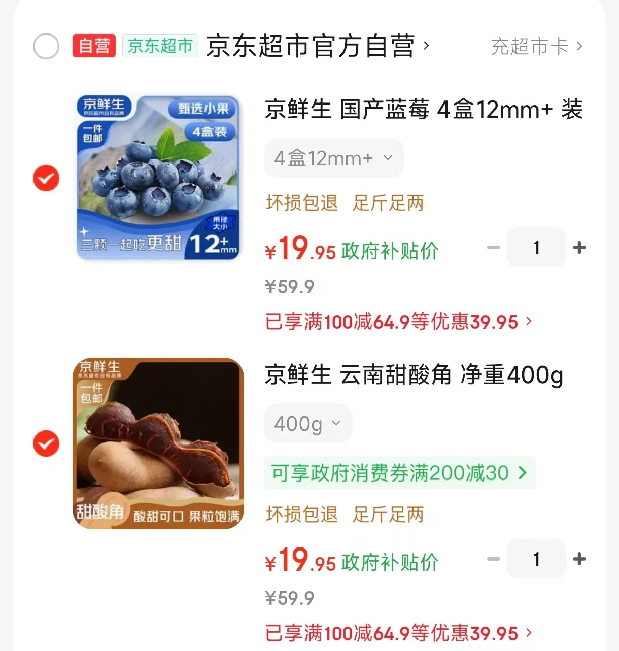 京鲜生 国产蓝莓 4盒12mm 装125g/盒,拍2件【39】共8盒